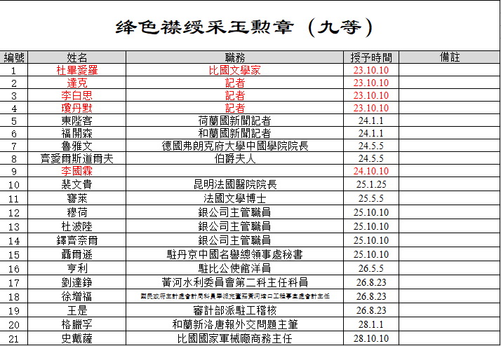 笔者整理了一至九等采玉勋章的编号姓名对照清册供同好对自己的收藏进行对照。